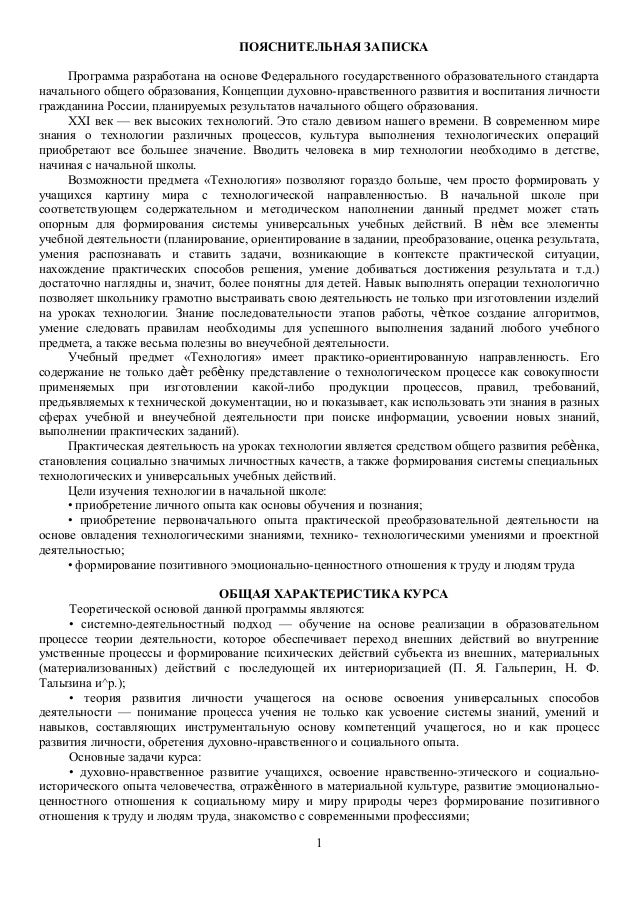 Фрагмент: 1. ПОЯСНИТЕЛЬНАЯ ЗАПИСКА Настоящая программа разработана в связи с целью развития личности младшего школьника, формирования умений и навыков учебной деятельности, готовности к самостоятельному учебному труду и др., позволяют обеспечить качественно новый, высокий уровень подготовки младшего школьника к обучению в среднем звене школы. Данная программа соответствует федеральному компоненту государственных образовательных стандартов начального общего образования 2004 г. (или ФГОС второго поколения), составлена на основе авторской программы Е.А. Лутцевой «Ступеньки к мастерству» системы «Начальная школа ХХI века», руководитель проекта – член-корреспондент РАО проф.